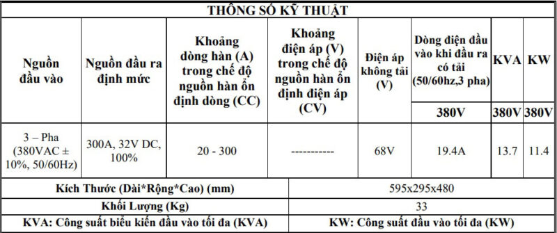 Công suất làm việc mạnh mẽ Cung cấp nguồn hàn đầu ra 300A. Hàn tốt với que hàn có kích thước 2,6-6 mm. Hiệu suất chu kỳ làm việc đạt 100% ở 40oC, nên HK300A, MMA300PRO có thể hàn liên tục ở 300A mà không báo quá nhiệt.