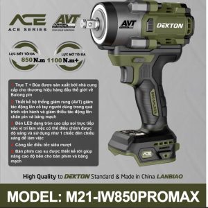 Máy siết bulong dùng pin 21V Dekton M21-IW850PROMAX